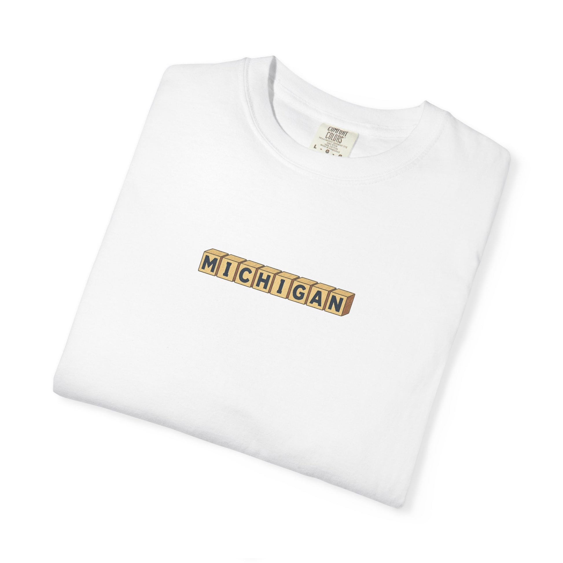This is a classic look. Michigan, wooden blocks...this shirt will do well at a tailgate